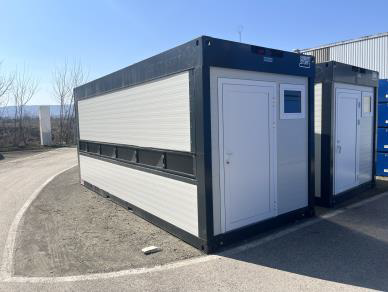Sklopivi kancelarijski kontejner dužine 20 stopa, sa mogućnošću ugradnje prodajnog zida kao opcionalne verzije.